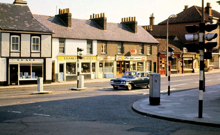 36 Church Road: Café Across Elm Park was a small café, where for a time I had my lunches when mother was away at work or spending a day in town... Trading in 1959 as The Stanmore Grill, part of the premises was a ladies hairdressing salon at some point. In the early 1960s it also housed a back-room café accessible through a side entrance in Elm Park where frothy coffee was served in glass cups and there was a small jukebox device mounted on the wall. This enterprise was run by a young man called Pip Lewis, the son of the owners of the main business. This was very popular for a while with the middle-class teenagers of Stanmore as somewhere to go in the early evenings and listen to pop music, but tragically Pip was killed in a car crash on the A5 near Elstree and the back-room closed, but the main Stanmore Grill business continued for some years. The whole building was demolished c1970 and replaced by new shops and offices. 34 Church Road: Public House - The Fountain ...then a pub... 30 Church Road: Boot & Shoes - Filling Station ...then a small shop which used to house a real Dutch shoemaker, and above the shop was a billboard that for a long time said ‘What we want is Watneys’, whose message I could never comprehend. The Dutchman was never very friendly, but I recall the strong close smell of leather when you went into his shop. Trading in 1959 as R Hicks boots & shoes, the shoemaker's was accessed through a side door to a larger building (see photo in the preceding section) which also housed Sawford & Smith Motors Ltd and Stanmore Filling Station. In 1944 this was known as Hammond's. Another contributor recalls: "As to the filling station, it had pumps that were set into the wall of the front of the shop and an arm swung out across the pavement with the hose to fill the awaiting car at the kerbside". This was demolished c1970 along with the neighbouring pub and the site became part of the Fountain House development already mentioned. 28 Church Road: Hardware Then slightly indented in the line of shops at that point there was the extraordinary ironmonger’s shop Eastoe. Mr. Eastoe was a white-haired man who crammed so much into his shop that you could hardly move through it all to get to the counter at the back, but you could buy almost anything there; shops like that just don’t exist any more. This was still trading as Eastoe in 1959. It was demolished c1975 and replaced by Fountain House. 26 Church Road: Newsagent Then there was Wyman's newsagents, half open to the street, where there was a rather disagreeable assistant, but where one could also get chocolate. This was still trading as Wyman's in 1959. It was demolished c1975 and replaced by new shops and offices. 24 Church Road: Butcher Then there was Channell, the butcher, who mother thought was ‘familiar’, and he was ousted in her patronage by Dracott, the butcher at the top of Stanmore Hill, though my aunt Margot went to Channell, and my first cousin Ann recalls the cashier as inhabiting a sort of glass case inside the shop. In 1959 this was trading as Kingston butchers. It was demolished c1975 and replaced by new shops and offices. Addendum 2021: It's now not clear whether Sidney Channell butchers ever occupied this site in Church Road as they were definitely at 3, The Broadway until at least 1960. 22 Church Road: Café Then there was I think a workman’s café, which of course we never entered... In 1959 this address was occupied by S West confectioner. In the early 1960s the shop became H Davies newsagent & confectioner. Hugh Davies was formerly a Warrant Officer at RAF Stanmore Park and bought the shop when he retired. It was demolished and replaced by new shops c1975 and I understand that Mr Davies may have resumed business at premises in the new development. 20 Church Road: Greengrocer Evans the greengrocer next door was frequently visited, though. My mother went there regularly, and it occupied a rather old building, so that you had to descend well below street level to get into it. In 1959 this was trading as CF Hailey greengrocer. It was demolished c1975 and replaced by new shops and offices. 18 Church Road: Cycles & Toys Next there was a bicycle shop (Tomson Bros) run by a rather strange man who also sold rather interesting toys, a long deep shop, again descending well below road level. This was still trading as Tomson Bros in 1959. Charlie Tomson, the older brother, had died by then but the younger brother, Ray, continued with the shop until it was sold for demolition and replaced by new shops and offices c1975. 14 Church Road: Baker Then I think there was another baker, whom we didn’t patronize... In 1959 this was The Village Pantry. It was later absorbed into Rossi's Café and eventually demolished c1975 to be replaced by new shops and offices. 12 Church Road: Café ... and perhaps also another café... In 1959 this was Rossi's Café. It was demolished c1975 and replaced by new shops and offices. 10? Church Road: Hairdresser ...then a hairdresser which I thought was rather odd when I went there because you paid for your haircut through a small hole in a window at the back of the shop, and you never saw the person behind it. I have no knowledge of this as a hairdresser but by 1959 10 Church Road was trading as a Fish & Chips shop. It was demolished c1975 and replaced by new shops and offices. 6-8 Church Road: Electrical Next came an electrical shop... This was Stanmore Electrics run by a Mr Walker. It continued trading until c1975 when it was demolished and replaced by new shops and offices. ![]() 7 The Broadway: Chemist ...and a little further down towards the Broadway, Frank's the chemist, which we often patronized... Still trading in 1959 as R C Frank dispensing chemist, this outlet closed in the 1960s when the business moved into the newly built Buckingham Parade development at the foot of Stanmore Hill. The premises still exist but were long ago absorbed into the neighbouring National Westminster B